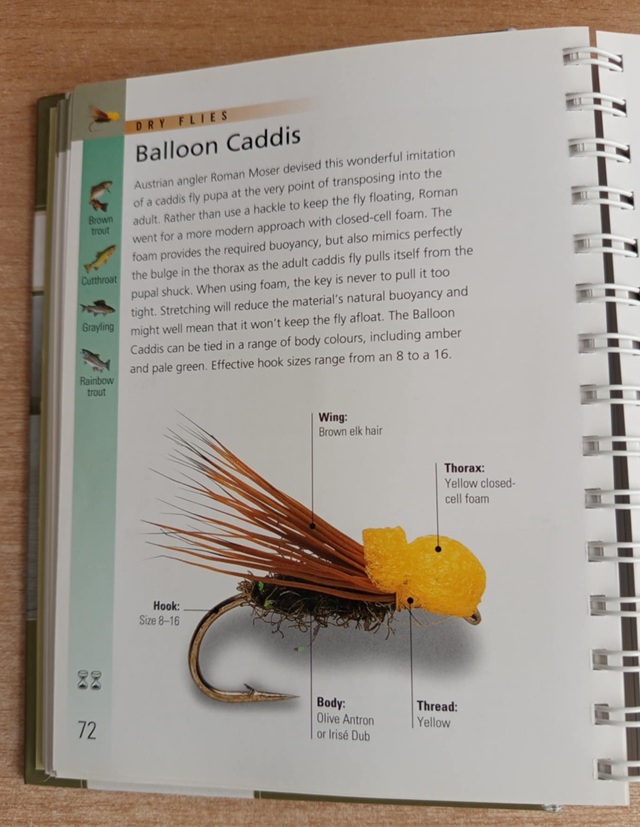 Jedna od imitacija kedisa – Balloon caddis. Ilustracije i opis su iz poznate knjige “The fly-tying Bible” Peter Gathercole sa strane 72. Na narednoj strani – 73. u šest slika je postupak izrade ove mušice.