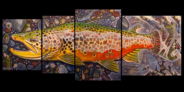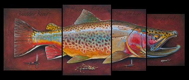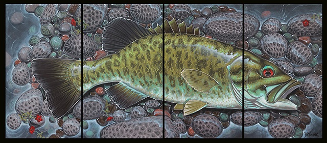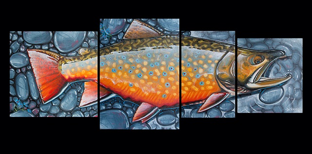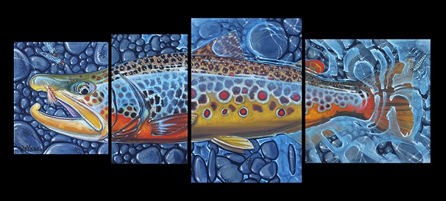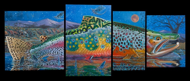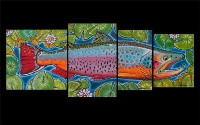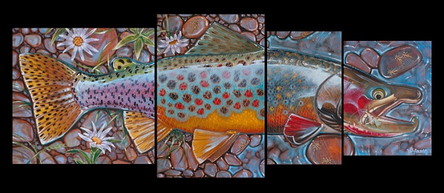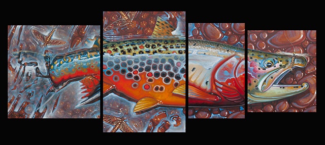 Poznati umetnik Derek De Young je uradio seriju prelepih umetničkih slika salmonida i drugih vrsta riba (bas, morske ribe, …) koju je nazvao četiri u jedan. Vrhunske slike riba velikih dimenzija složenih tako da od četiri slike dobijemo jednu ribu je lepo zamišljeno i vrhunski odrađeno.