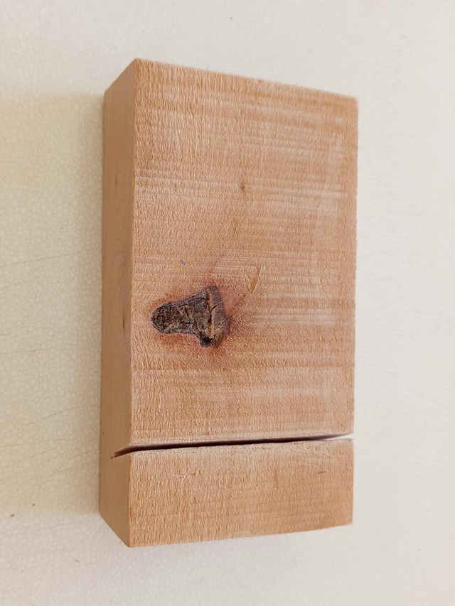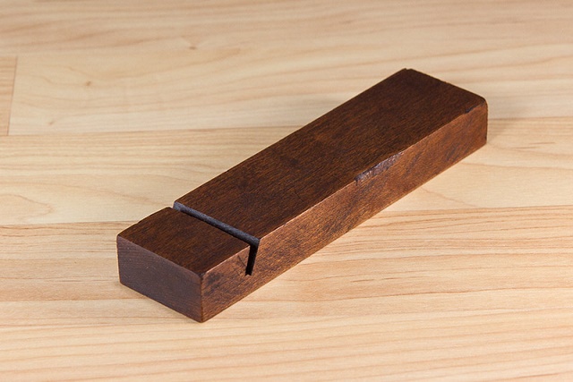 Postolje sam sebi napravio od otpadka iz pilane – komada drveta pravougaonog oblika. Urezao kosi kanal popreko i ošmirglao ga. Možete ga obojiti, lakirati ili ostaviti u prirodnoj boji drveta.