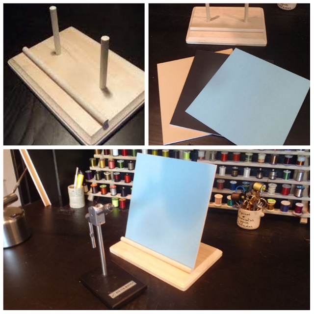 Najjednostavnije je napraviti drveni držač (postolje). Ima ih raznih. Radite ga od drveta u kojem urežete kanal pod uglom i ubacite karton kao držač ili šperploču. Boju pozadine menjate kako vam odgovara. Možete postaviti jedan ili dva štapića koji će dodatno pridržavati zaslon