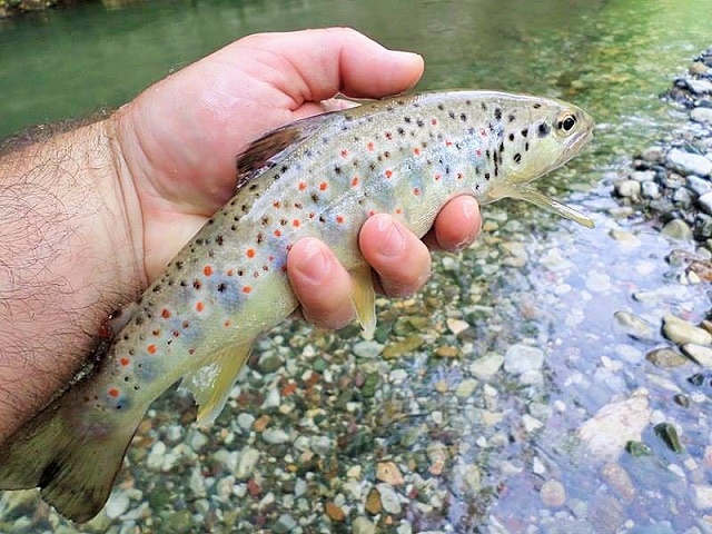 Voda jaka. Ribe su nakon slikanja vraćene.