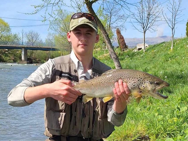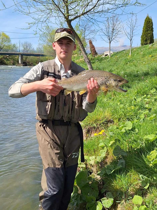 Emrah Trako, Vitez, BiH; Potočna pastrmka oko 55cm; rijeka Lašva, BiH; Ulovljena u aprilu 2024. C&R!