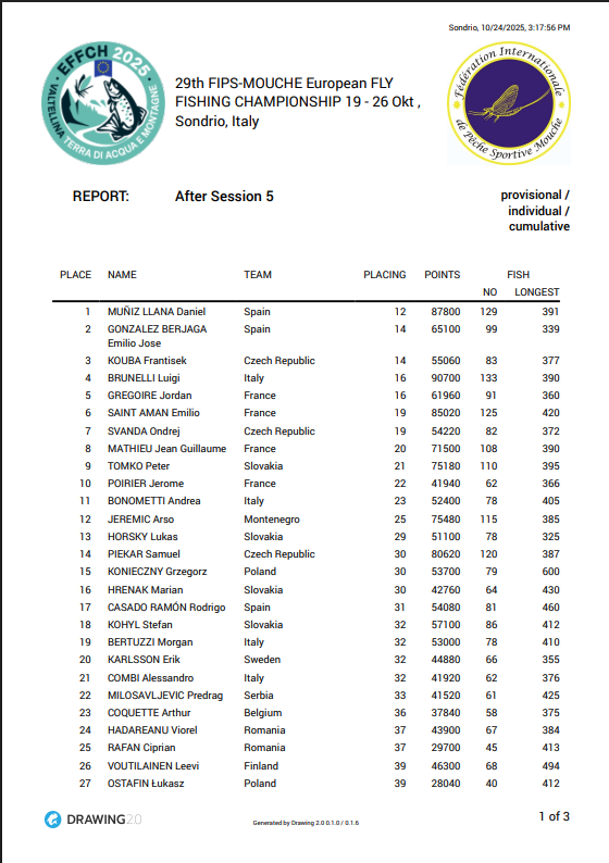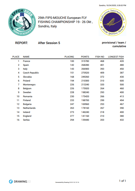 29th FIPS-MOUCHE European Fly Fishing Championship (18. -25. Oktobar 2025.) Italija.